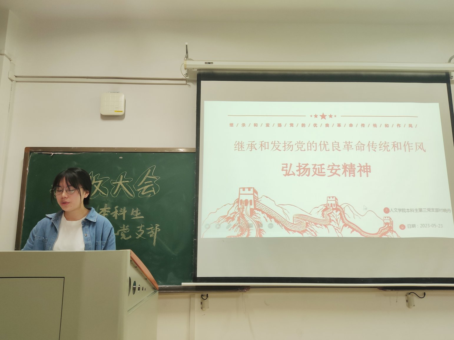 为了让“微党课”更鲜活、接地气,本科生第三党支部鼓励人人上台,让党员“唱主角”。威廉williamhill中文官网本科生第三党支部成员付晓丹带来了微党课“学习习近平总书记重要文章《继承和发扬党的优良革命传统和作风 弘扬延安精神》”,她向大家介绍了党的七大在党历史上的重要地位以及延安精神的具体内涵,并播放了《延安整风和百年大党的青春密码》,带领大家进一步领悟延安精神。