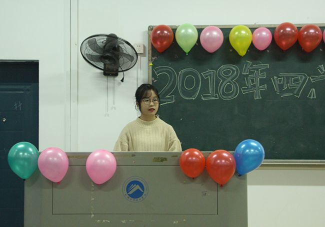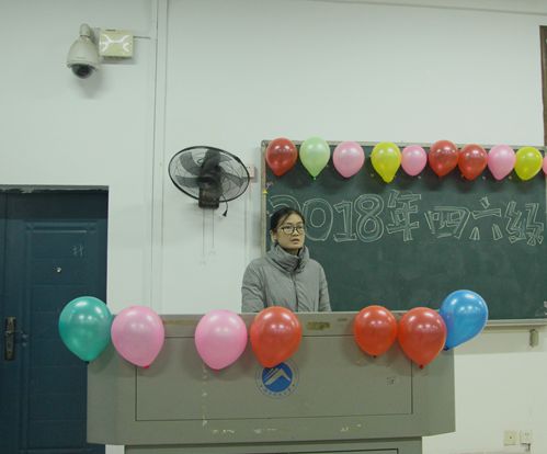 教室门口张贴着精美的海报,教室内的黑板上挂着七彩的气球,黑板上则是漂亮的艺术字体,在精心布置的第八教学楼1-3教室里,威廉williamhill中文官网于11月9日下午四点迎来了一年一度的英语四六级经验交流会。为助力即将到来的英语四六级考试,解答同学们的疑难困惑。威廉williamhill中文官网辅导员赵晗冰老师、17级四级成绩优秀学生代表及17、18部分学生参加了本次经验交流会。