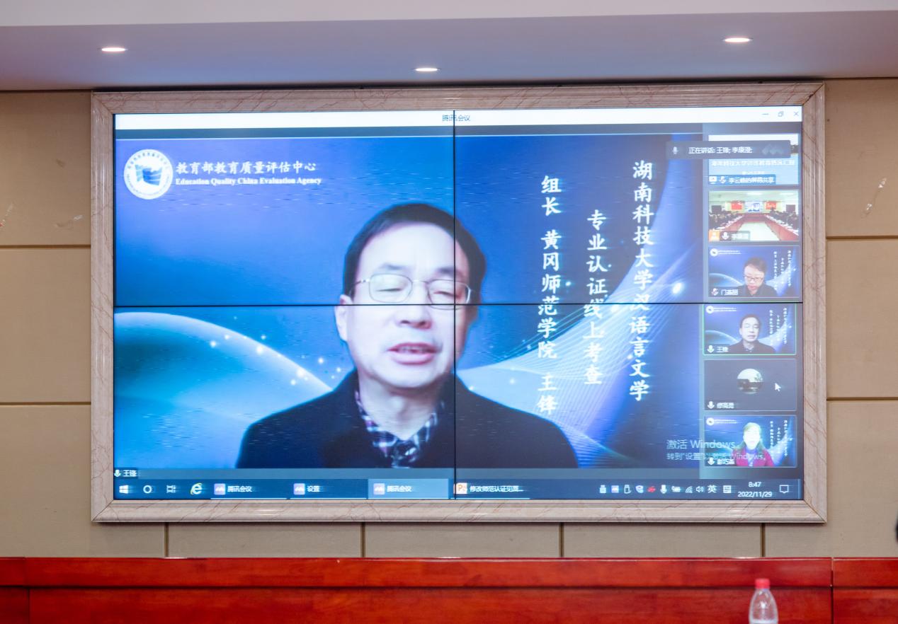 11月29日上午,威廉williamhill中文官网汉语言文学师范类专业认证专家组见面会以线上的形式在立言楼4-1室召开。黄冈师范威廉williamhill中文官网王锋、集美大学李雪、衡阳师范威廉williamhill中文官网彭巧莹、天津师范大学门燕丽、桂林市中山中学校长詹毅、西南大学科长曹建升等专家组成员及湖南省教育厅教师工作与师范教育处副处长廖高勇线上出席会议。校长朱川曲、副校长贺泽龙、相关职能部门负责人、学校各师范专业负责人、威廉williamhill中文官网负责人及中文系教师代表、承担汉语言文学专业基础课教学工作的相关威廉williamhill中文官网教师代表现场出席见面会。见面会由专家组组长王锋主持。