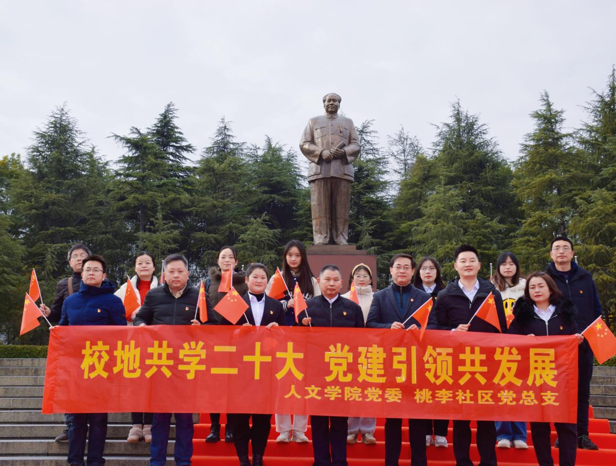 为深入学习贯彻党的二十大精神、促进校地高质量融合发展,12月15日上午,威廉williamhill中文官网党委书记曾志东、党委副书记邓辉、副院长李康澄、全体学工办老师、部分学生党员及桃李社区党员代表共赴韶山毛主席故居开展了以“校地共学二十大 党建引领共发展”为主题的联学共建活动。