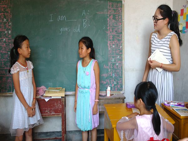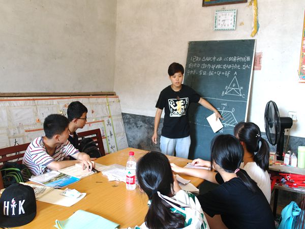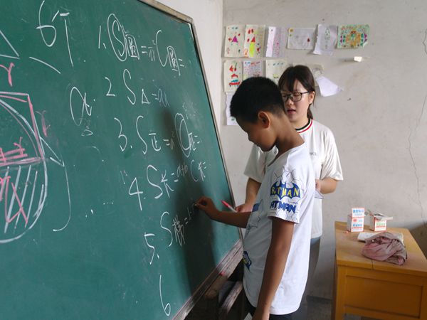 “蒹葭苍苍,白露为霜,所谓伊人,在水一方,溯洄从之,道阻且长……”初三的课堂上,志愿者李煜用简洁易懂、颇具古文美感的方法为孩子们讲解着《诗经·蒹葭》,他鼓励孩子们结合意境,理解晦涩字词,分析表现手法。“我逆着回旋的水流去追寻她,道路艰难而漫长,此句流露出主人公追求意中人而不可得的惆怅。”初三的刘清清表明了自己对诗句的理解。“How old are you?”,“I am eleven years old.”英语课上,志愿者叶甜要求孩子们用英语交流,锻炼口语能力。在她的鼓励下,孩子们踊跃上台对话,兴奋地介绍自己的英文名。六、七年级的教室里,志愿者鞠广政采用公式与题目结合的方式进行几何教学,孩子们则积极与老师互动,用粉笔快速在黑板上写下答案,并自信地走上讲台参照着几何图形讲解自己的解题思路。