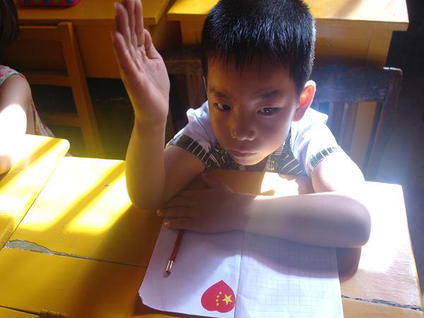 午后的太阳光十分强烈,带着浓郁的暑气。志愿者在教室细致地批改着孩子们的作业,清晰地标记错误部分,针对每个孩子不同的学习情况及存在的问题,他们在每个作业本上写下评语。见到手捧作业本前来询问难题的孩子,他们微笑地予以耐心解答,晶莹的汗珠从他们额间滑下,浸湿了衣衫。