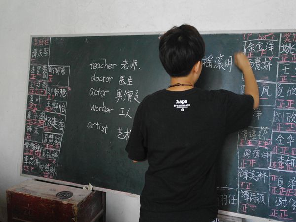 课堂上,二、三年级的孩子们正在热烈地讨论着各自的梦想,“我想成为一名宇航员,我想去看银河系,听说那里很大……”夏泽慧小朋友两手紧紧握于胸前,抬着头面露羞涩、但认真地说道。幼儿班的数学课堂上,志愿者张华艳通过奖励的方法激发孩子们学习的兴趣。每个主动站起来回答问题的孩子,都可以获得一块橡皮。孩子们对新橡皮爱不释手,用棱角轻轻地擦去作业本上的错误部分。