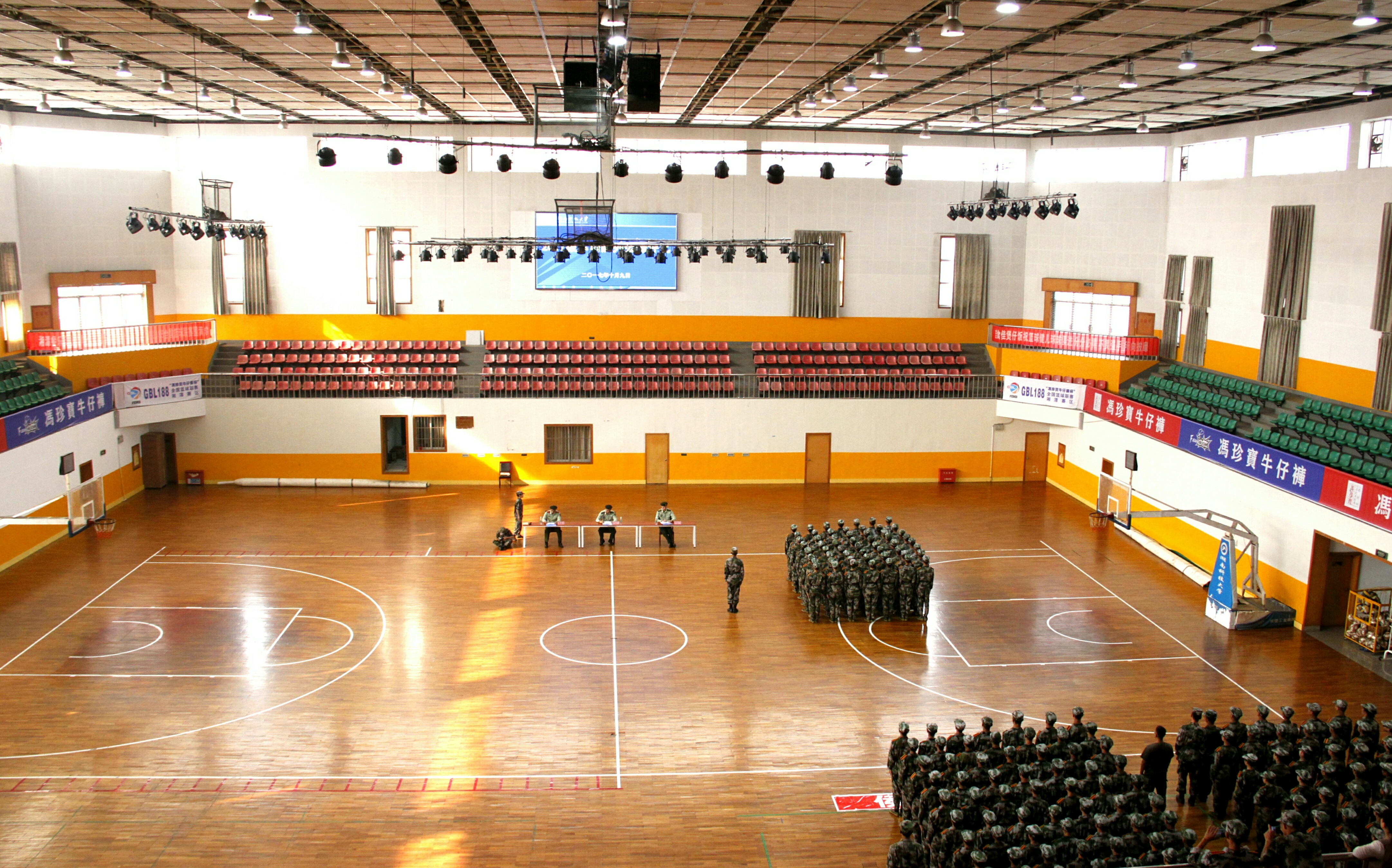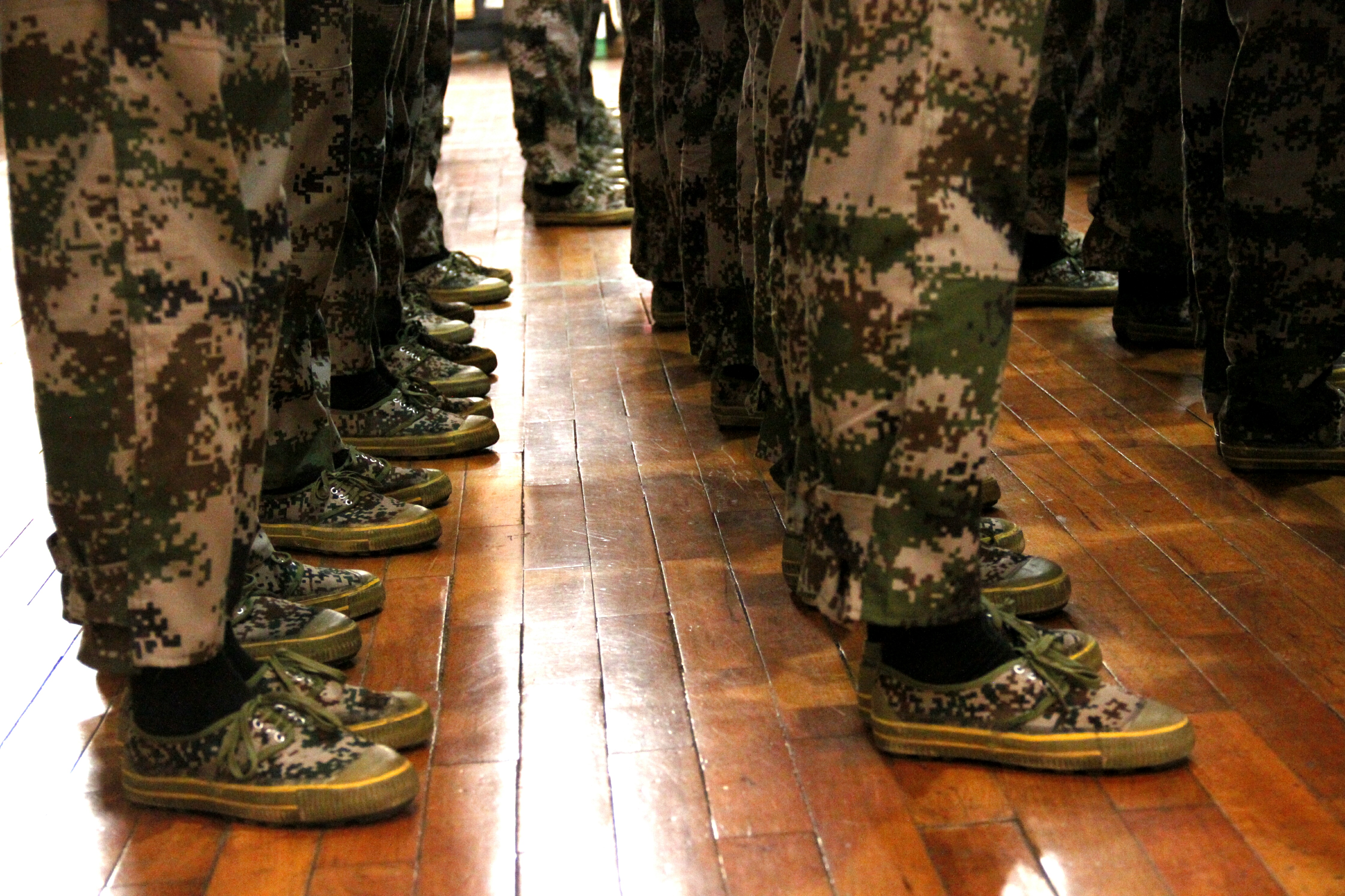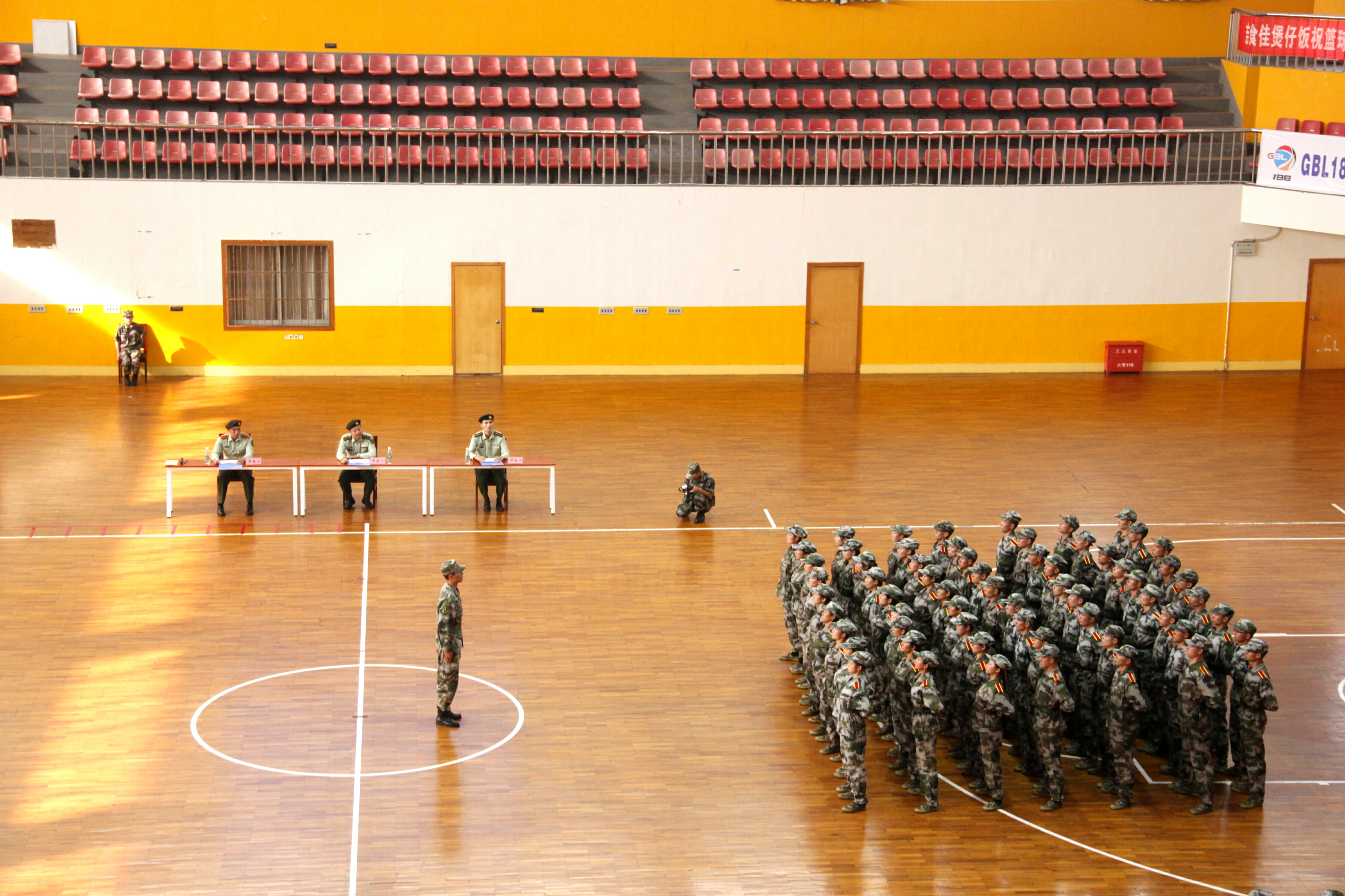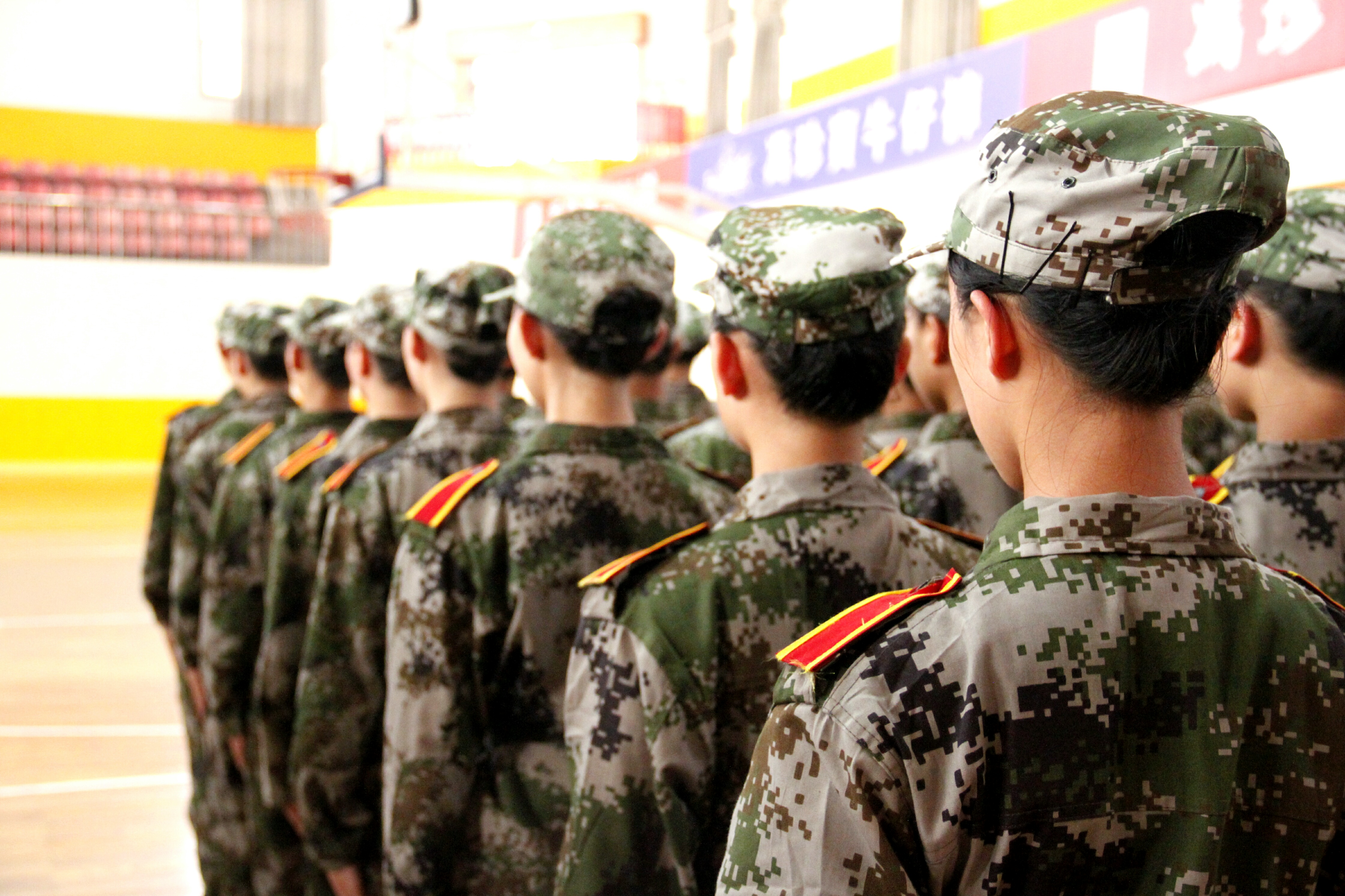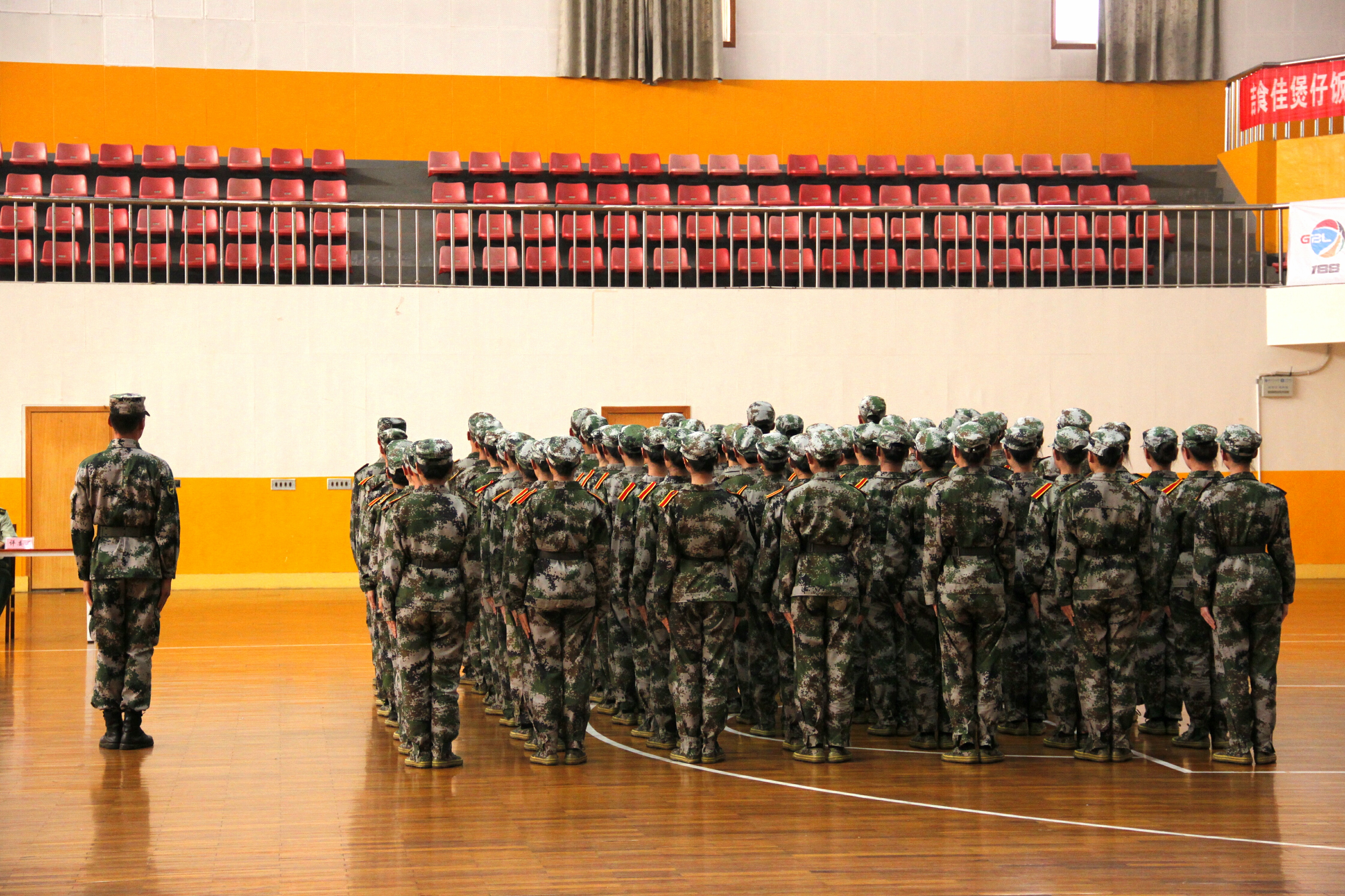 据悉,为保证比赛的客观公正,此次队列会操评比采取抽签的形式,并在评比结束之后公布各个威廉williamhill中文官网的出场顺序。威廉williamhill中文官网作为第三个出场的威廉williamhill中文官网,学员们整装待发。北校篮球馆外,威廉williamhill中文官网方阵队在尹教的带领下早早来到篮球馆外集结完毕,身穿迷彩服的方阵队成员们个个精神抖擞,表情严肃,在教官雄浑嘹亮的口号声中,步调一致地走进体育馆内。新生们整理着装,检查腰带,还不时互相检查军容,为这场队列会操评比做最后的准备。