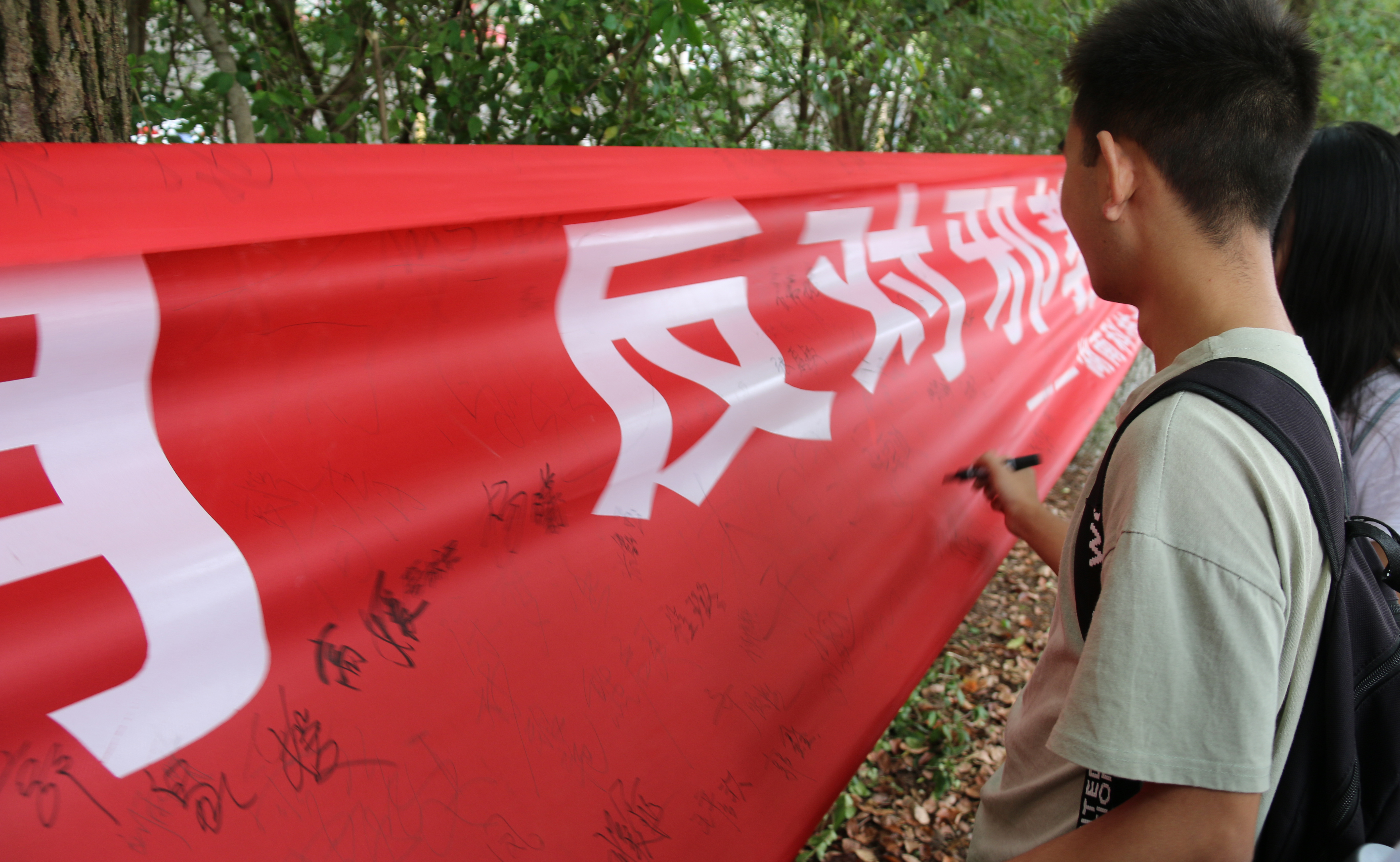 而在反邪教签名活动上,威廉williamhill中文官网宣传部门积极组织,在场学生纷纷积极参加,均在横幅前有序排成了长队,认真倾听宣传人员解说反邪教相关知识。此后,他们以高度认真的态度,纷纷拿起马克笔,一笔一划地在横幅上郑重签下自己的名字。顷刻之间,长长的横幅上都写满了密密麻麻的姓名,这体现着新生们对反邪教活动的支持与认可。