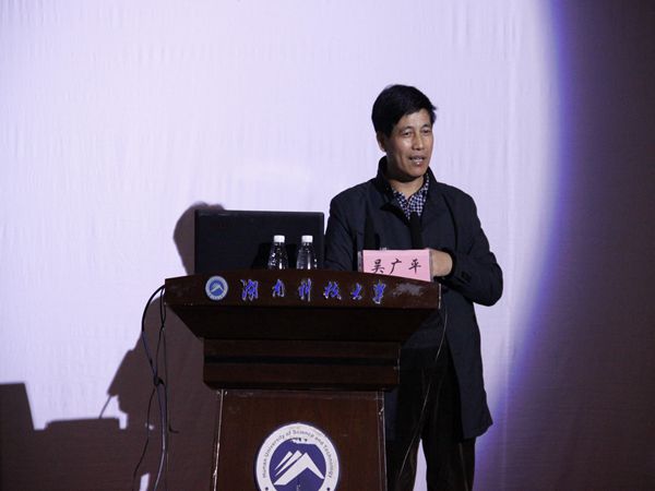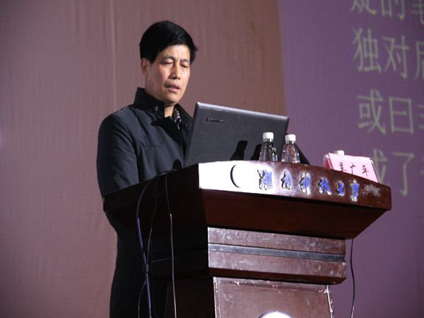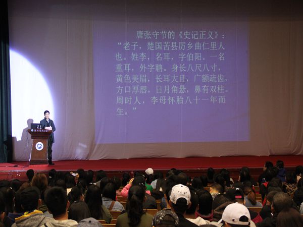 10月17日下午2点,威廉williamhill中文官网俱乐部座无虚席。全国优秀教师、中国屈原学会常务理事兼副秘书长、湖南省屈原学会副会长、威廉williamhill中文官网中文系教授吴广平作客“青马讲坛”,作“走近老子与《老子》”主题讲座。这是由威廉williamhill中文官网团委主办的“青马讲坛”系列学术讲座的第六期第五讲,校团委副书记马缤辉、王艳,本期青马班的全体学员、我校各威廉williamhill中文官网的师生代表以及来自长沙、株洲、湘潭市区的文学艺术家和国学爱好者共1000余人聆听了本次讲座。