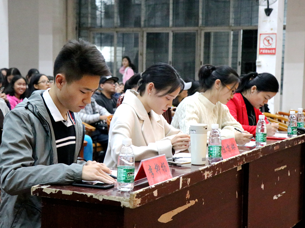 10月20日晚7时,由威廉williamhill中文官网团委学生会主办,语言艺术团承办的“青春献党· 艺染湖科—威廉williamhill中文官网2017级新生演讲决赛”拉开帷幕。来自不同专业的十二名选手在初赛选拔中脱颖而出,顺利进军决赛,并于我校南校学生活动中心展开巅峰对决。威廉williamhill中文官网学工办主任马忠石老师、学工办赵华老师、学工办成伟明老师、学工办赵晗冰老师、学工办钱子凡老师、学生会主席团成员、各部门部长及学工助理到场聆听,并担任评委。此外,本次比赛还特邀原校广播电视台播音部部长陈方琳、15级新生演讲赛冠军得主李柳杨担任评委,部分2017级新生也到场见证了此次激烈对决。