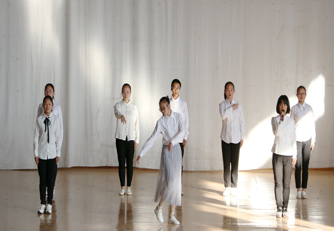 文学二班带来的一首耳熟能详的《国家》,演员们用层层递进的手语表达着丰富细腻的情感,气势磅礴、浑厚嘹亮的旋律环环相扣、一气呵成,唤起了现场观众慷慨报国的凌云壮志。“让我掉下眼泪的,不止昨夜的酒。让我依依不舍的,不止你的温柔。”一曲流行民谣《成都》,悠扬舒缓的吉他伴奏,洋溢着历史二班同学们值得细细品味的青春柔情,一些生活中稀疏平常的小事,都在演员们的唱跳表演中变成故事,在不经意间击中聆听者的心房,自然而然真情流露的同时勾起了现场观众的共鸣及憧憬。