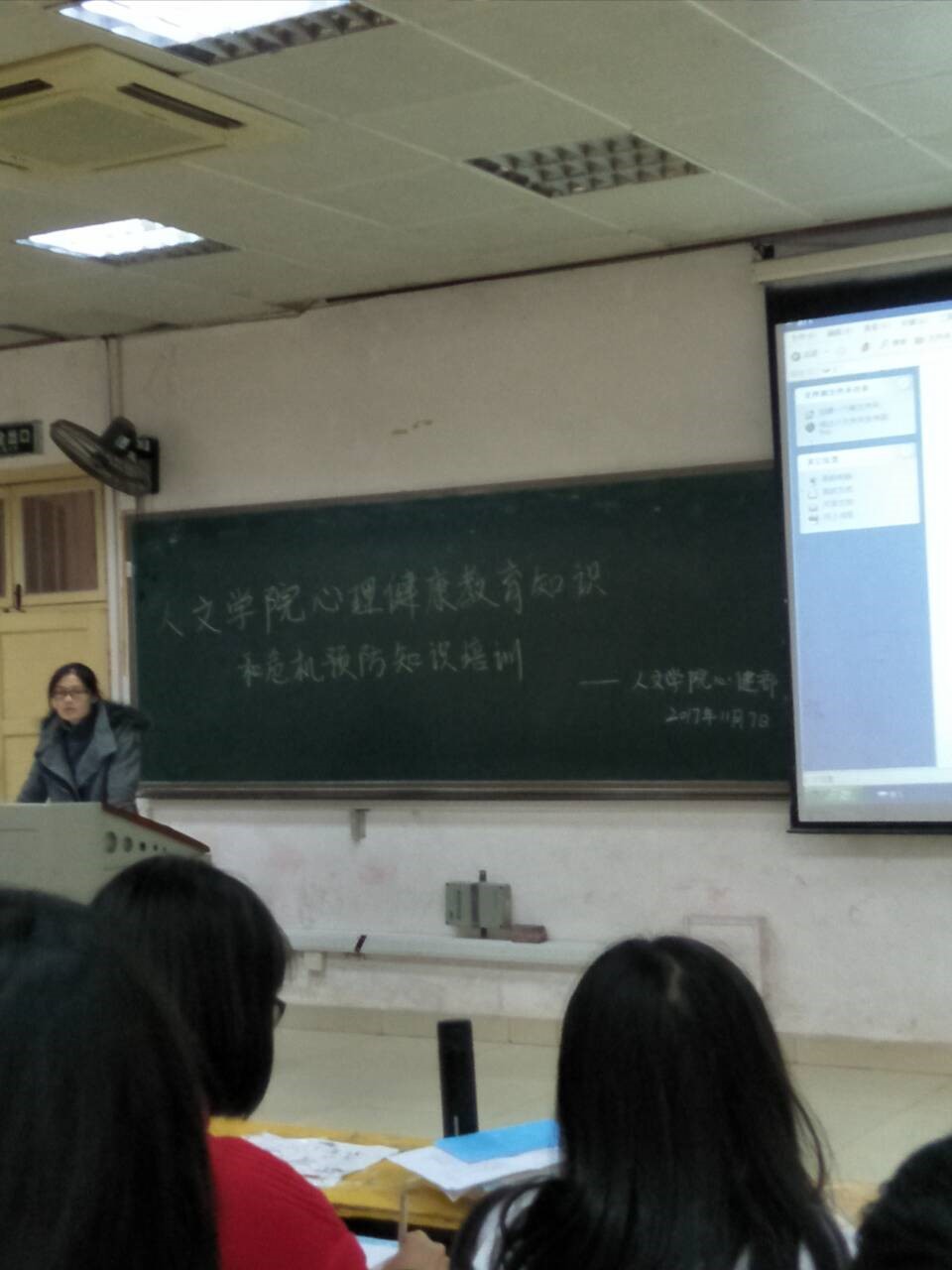 “我们应该对经济困难、学业受挫、人际交往能力适应性差以及家庭关系破裂,发生重大事故的同学要给予更多的关怀与照顾”。赵晗冰老师强调,当人的心里压力非常严重时,应当及时找到合适的对象进行倾诉,并且每个人要将校心健中心看做是可以让自己身心愉悦、倾诉压力的地方。期间,赵老师还列举了几个现实中的事例来告诫同学——心理健康对于当代大学生非常重要。最后,她要求同学们如遇到身边的同学有异常行为应当及时反馈给老师,还可拨打心理咨询室电话号码:58291687进行咨询。