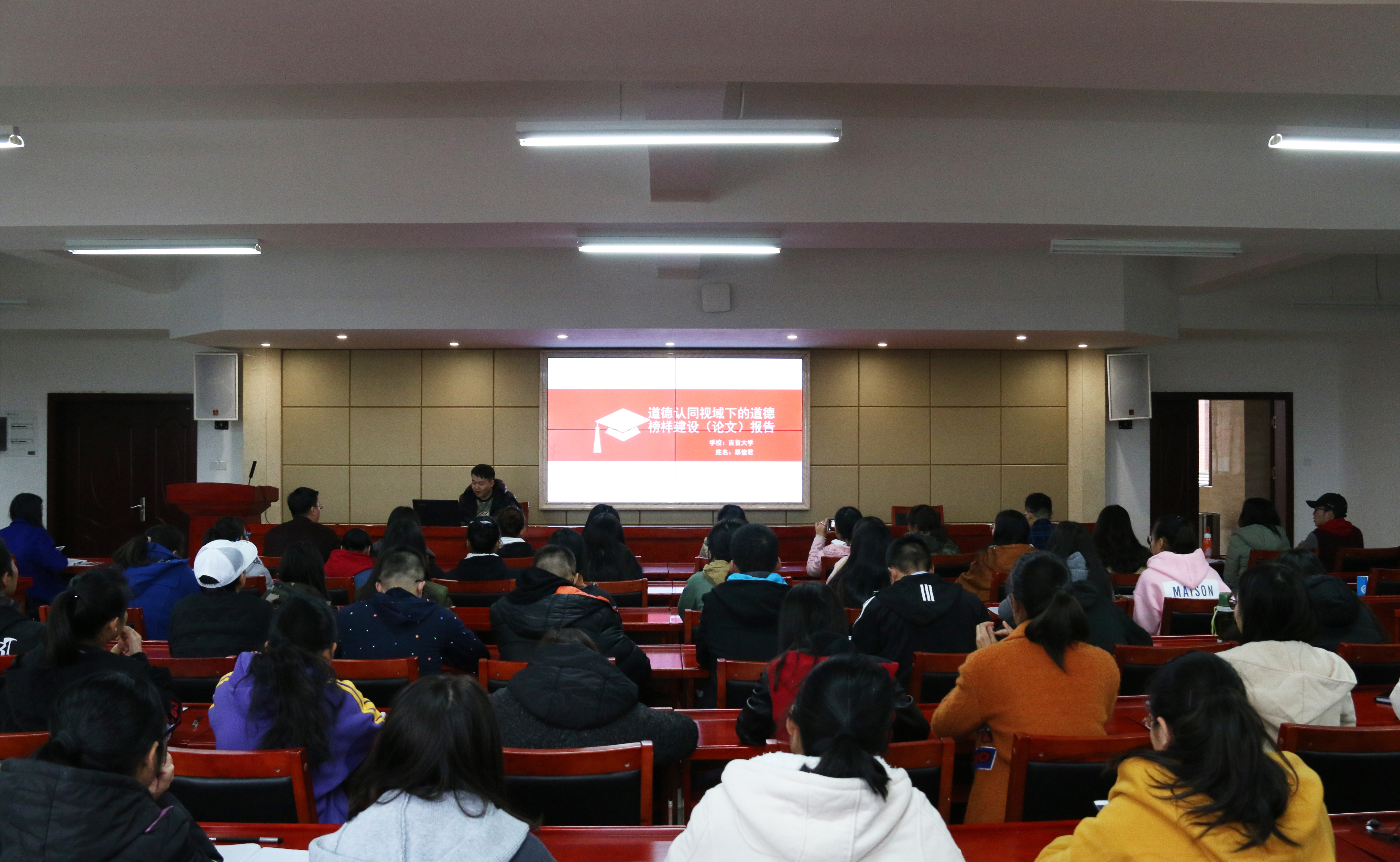 报告会现场,来自南华大学、中南大学、威廉williamhill中文官网、吉首大学的8位研究生进行了优秀论文报告。来自中南大学的李哲从研究背景、研究内容和研究结论三个方面向大家报告了她的论文《提升亲和力和针对性,增强思想政治理论课实效性》。李哲认为,增强思想政治理论课的实效性是高校关注和探索的时代命题。亲和力和针对性是增强思想政治理论课实效性的重要条件。改善教师教育教学方式、提升教师人格魅力、树立“以人为本”的教育理念、搭建信息化网络平台、完善实践教学是增强思想政治理论课亲和力和针对性的重要路径。
