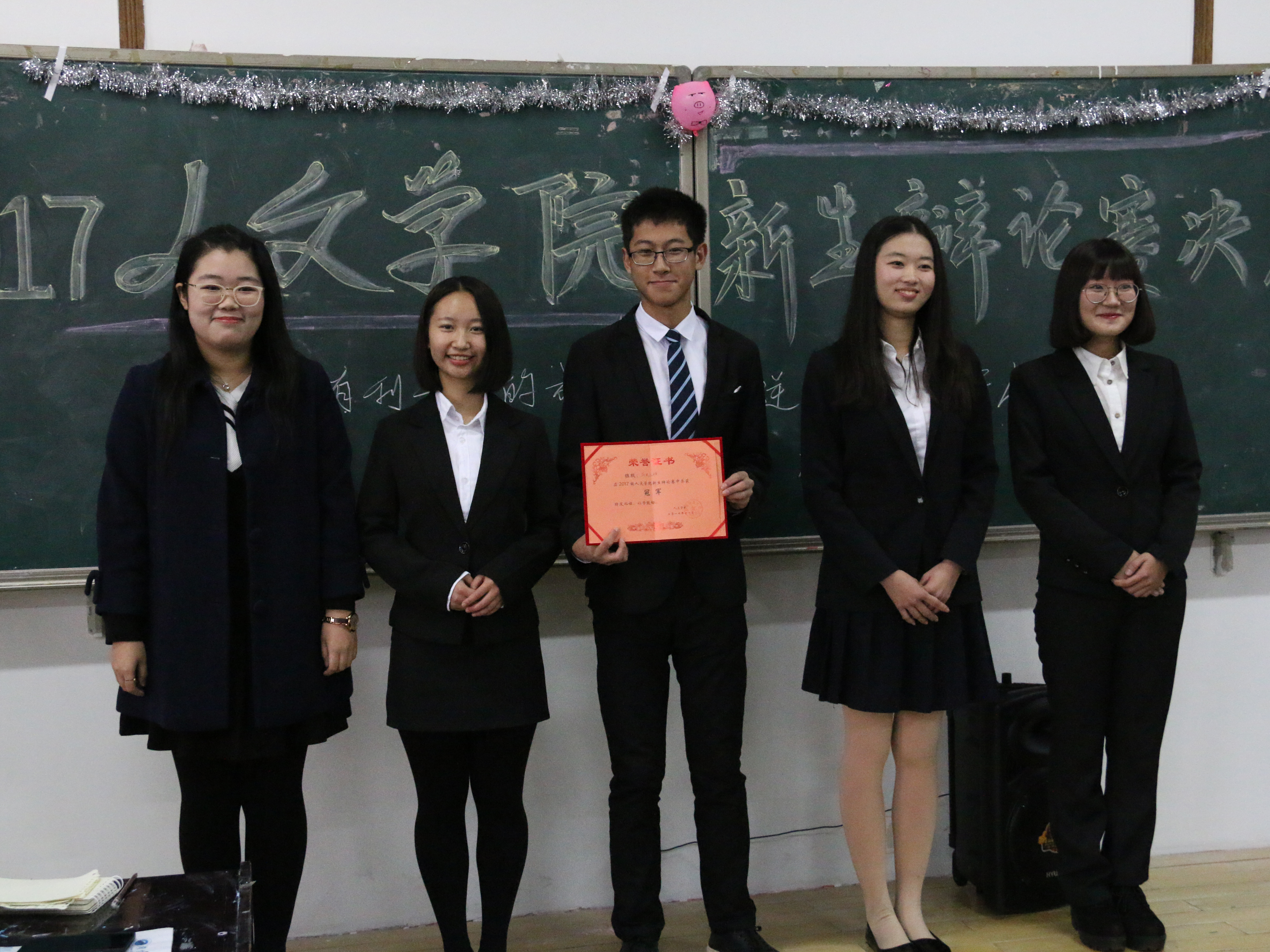 双方辩手你来我往、引经据典,相互盘问,展开了一场长达一个半小时的“拉锯战”。一方舌绽莲花、口若悬河,另一方也滔滔不绝,不甘示弱,犀利的对话使赛场气氛逐步升温,现场观众经久不息的掌声更是将气氛推向了高潮。正方二辩刘明在质询环节争锋相对,适时抛出“既然逆境更有利于人成才,为何不创造逆境?”这一问题,说明逆境并不更有利于人成长,他用其鲜明的观点,恰到好处的论证,犀利的言辞赢得了此次决赛优秀辩手的称号,最终,此次决赛桂冠由历史二班代表队摘得,汉语言文学五班代表队荣获亚军。