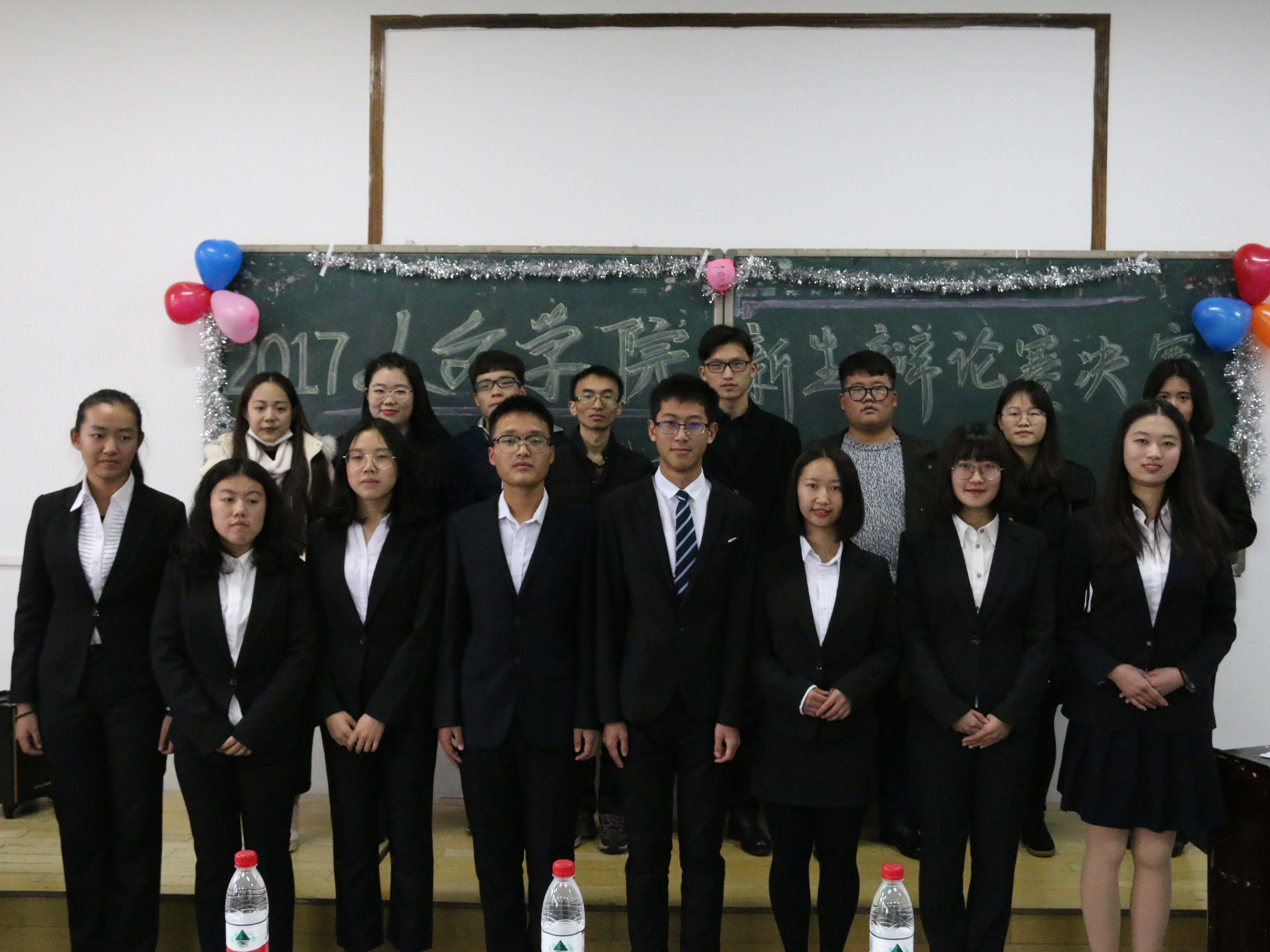 为丰富威廉williamhill中文官网学生的课余生活,培养同学们的思维辩证能力及语言表达能力。12月2日下午14时,威廉williamhill中文官网2017年新生辩论赛决赛于第八教学楼2—3教室激烈“开战”。为促进比赛顺利进行,威廉williamhill中文官网诚邀校辩论队队长杜书晶、校辩论队成员郑玉婷、干静、潘志伟、焦晓漫担任此次辩论赛评委,威廉williamhill中文官网团委学生会主席李煜、副主席王健、勤工部成员及2017级部分学生代表到场观赛。
