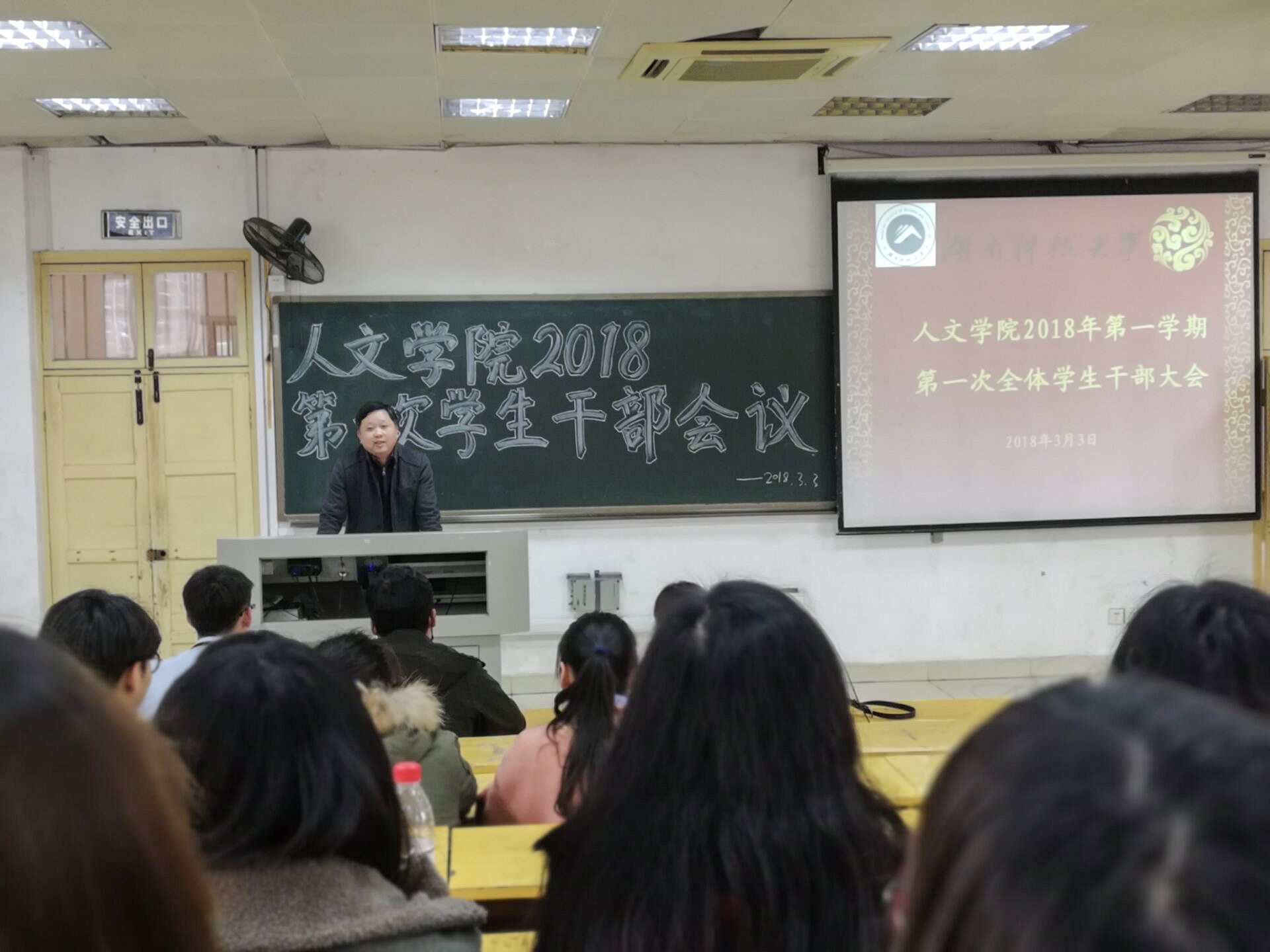 为迎接新学期的到来,推进威廉williamhill中文官网学生管理工作的有序开展。3月3日下午,威廉williamhill中文官网于十教附一102教室召开了2018年度第一学期第一次全体学生干部会议。威廉williamhill中文官网党委副书记邓辉、学工办主任马忠石、学工办老师曾思妍等参加并主持了此次会议,威廉williamhill中文官网团委学生会及各班级全体学生干部到场聆听并集中收看2018年度学校共青团网络视频。