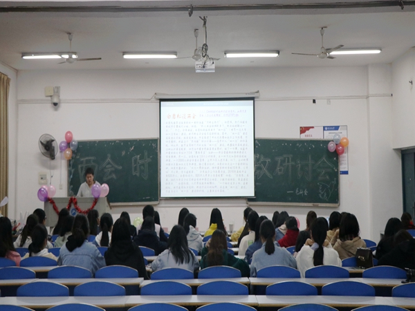 为深入学习“两会”精神,增强毛泽东思想邓小平理论学习研究会(简称“毛研会”)社员的思想政治理论素养,为今后成为一名合格的社会主义新青年打下坚实基础。3月23日晚19时整,威廉williamhill中文官网社联部联合毛研会举办的关于“两会”时政研讨会在庄严肃穆、雄伟宏亮的国歌声中拉开帷幕,毛研会全体会员准时于九教205教室参与会议。