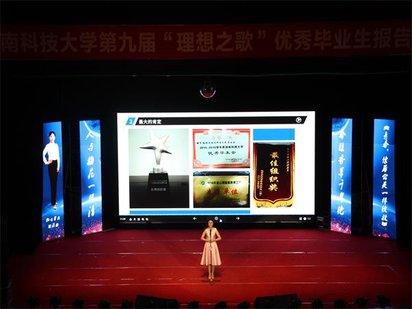 “今夜非常辉煌,今夜非常明亮,因为有十位优秀的青年,带领我们来到了理想的殿堂,非常高兴,让我们为他们鼓掌!从他们的精彩演讲中,让我们知道了理想长成了什么样子的。理想,长得有点高,让我们去攀登;理想,长得有点瘦,让我们去丰富;理想,长得有点美,让我们去维持;理想,还长着一对美丽的翅膀,让我们飞向人生的远方。所以啊,心中有理想,人生不迷茫;青春有理想,未来不流浪。让我们拥有理想,走在人生的梦想,让我们拥有理想,走在感受至高的荣光!”十位报告人依次汇报完毕后,胡石其副校长对报告会致辞并为十位报告人颁奖,活动最终在合影留念和热烈掌声中圆满落幕。