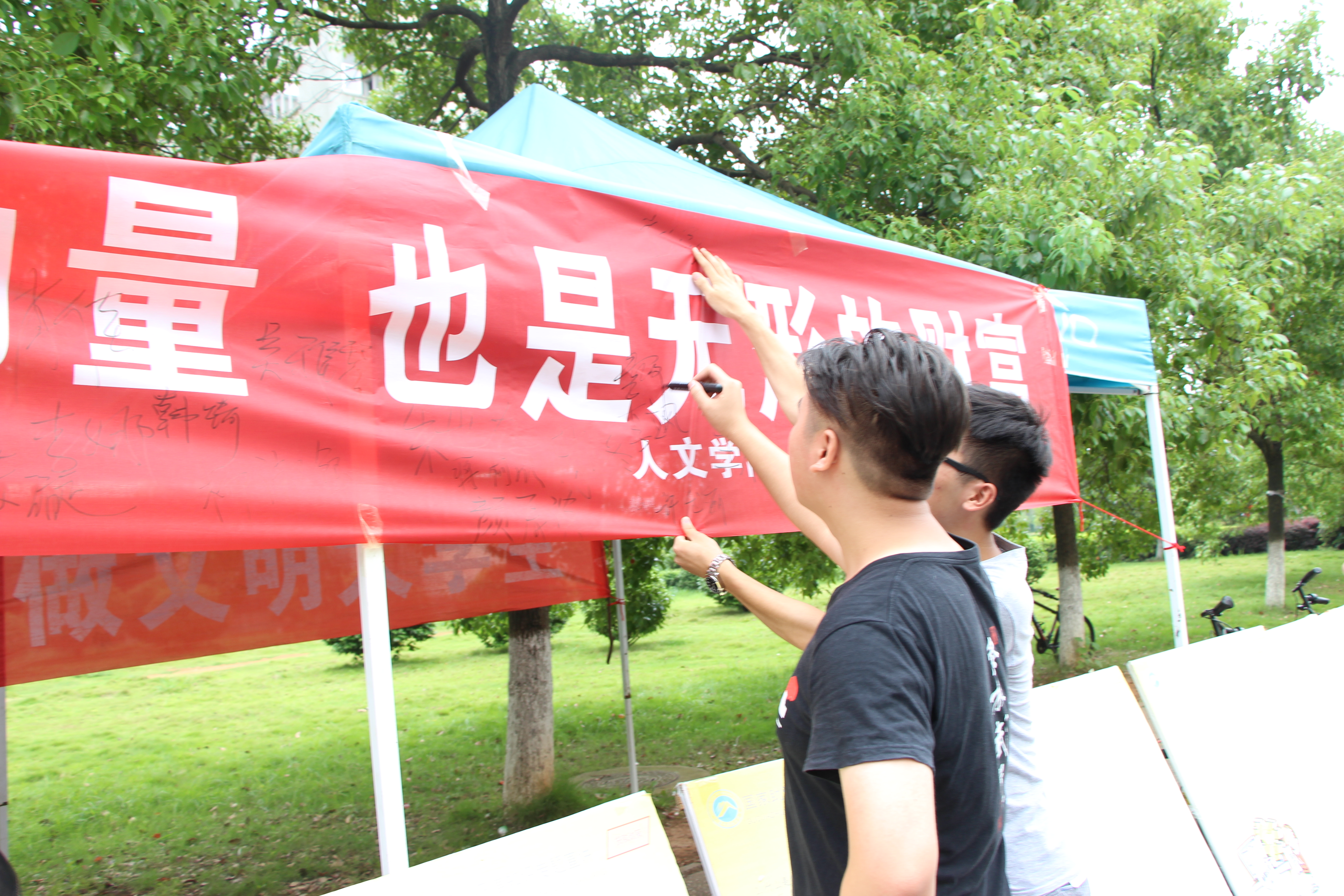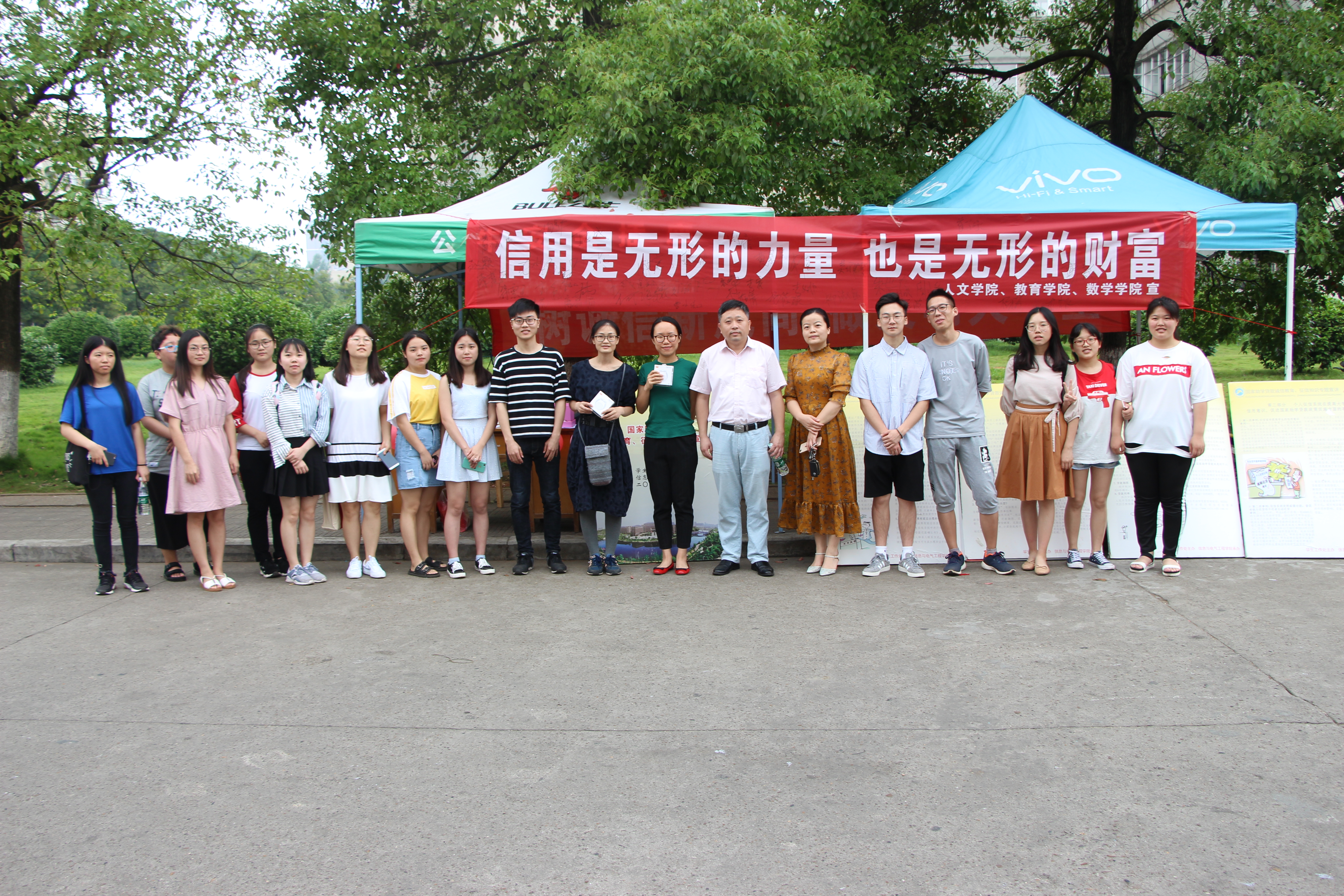 为进一步提高威廉williamhill中文官网学生的诚信素质,切实提升诚信教育实效,6月14日,威廉williamhill中文官网与教育威廉williamhill中文官网、数学与计算科学威廉williamhill中文官网七区宿舍共同举办2018年诚信展板活动,院党委副书记邓辉、学工办赵华老师、赵晗冰老师、王嘉敏老师参加此次活动。活动由勤工部组织。