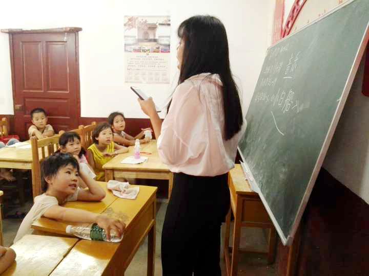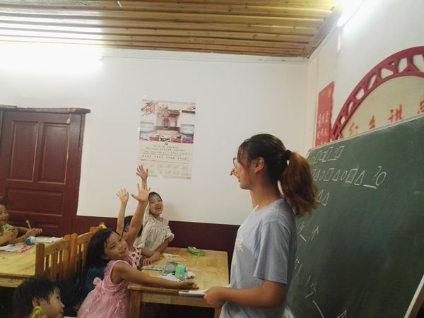 “蓝蓝的天空银河里,有只小白船。船上有棵桂花树,白兔在游玩……”上课不久,有一间教室就传来了悠扬悦耳的歌声。寻声而去,原来志愿者刘俊卿正在给一年级的小朋友们上音乐课。小朋友们跟着老师的节奏,微微晃动着自己的身子。一边陶醉于老师的歌声,一边自己轻轻的和着跟老师一起唱。在听完老师的演唱之后,同学们都跃跃欲试,想要一展歌喉。李恬婧是一年级的文娱委员,她代表同学们展示了自己的歌喉,“飘呀飘呀飘向西天,渡过那条银河水,走向云彩国,走过那个云彩国,再向哪儿去……”余音还未散去,教室里已响起了热烈的掌声。同学们脸上的笑容代表了对她歌声的敬佩与喜爱。