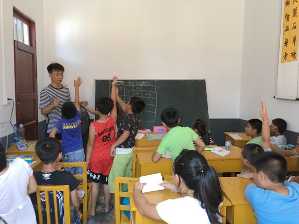 清晨,学生们陆陆续续的到达乡贤馆。老师早上好,老师早上好!向志愿者老师们问好的声音此起彼伏,一个个小天使笑的十分开心,对于他们来说上课并不是一件苦恼的事情,相反是假期最值得期待的事情。八点半,上课的哨声准时吹响。同学们快进教室,上课啦……”志愿者林点一边吹哨,一边呼喊同学们进教室。作为团队的领头羊,林点身兼数职,既要充当打铃人,准时吹响哨声。又是老师,要教幼儿园的小朋友们数学。