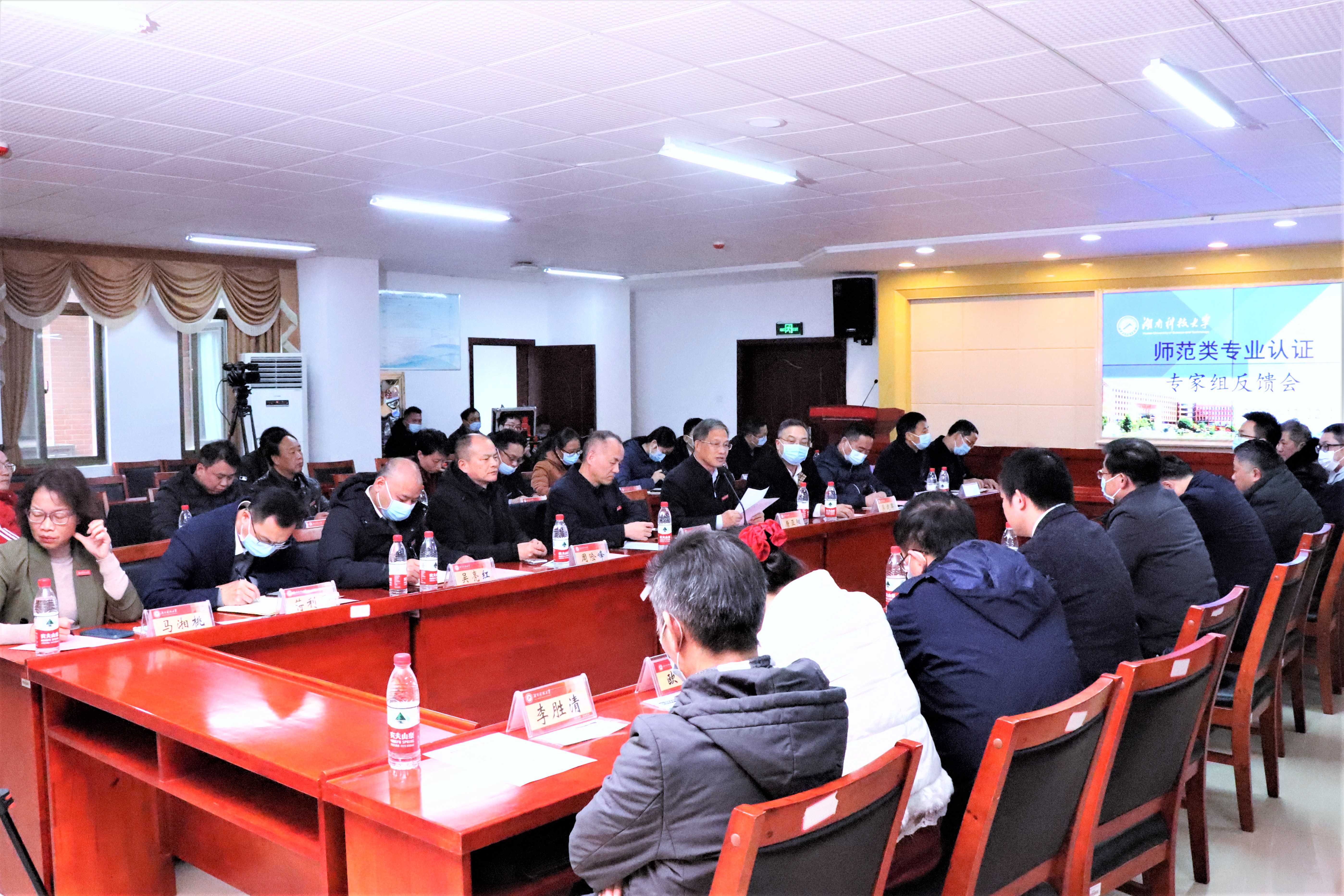 12月2日上午,威廉williamhill中文官网汉语言文学师范类专业认证专家组反馈会于立功楼3-2会议室召开,认证专家就线上认证考查意见进行了反馈。威廉williamhill中文官网党委书记唐亚阳、副校长贺泽龙莅临本次会议。相关职能部门负责人、学校各师范专业负责人、威廉williamhill中文官网负责人及中文系教师代表、承担汉语言文学专业基础课教学工作的相关威廉williamhill中文官网教师代表出席现场会议,专家组成员以线上形式参会。本次会议由专家组组长王锋主持。