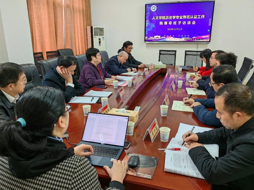 11月20日上午,认证考查专家见面会在我校立德楼A附楼五楼报告厅举行。认证专家全体成员、学校领导、学校职能部门负责人、认证专业威廉williamhill中文官网负责人以及认证专业师生代表等50余人参加见面会。分管本科教学工作的副校长周智华在会上向专家汇报了学校近年来在师范专业建设方面取得的成就以及存在的不足。威廉williamhill中文官网副院长欧阳萍代表历史学专业进行了补充汇报。见面会后,专家组参观了我校校史馆、海牛楼、书吧、微格教室、齐白石艺术馆和图书馆等教学场所。