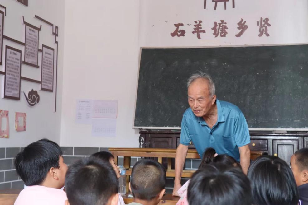 课堂进行到一半时,夏昭炎教授特意来到乡贤馆观摩志愿者们的教学,听着学生们用标准普通话朗诵古诗词,作为美学教授的他情不自禁地点点头,对课堂内容大为赞赏。古诗把色彩美、画面美、意境美与艺术妙笔融为一体,有着特殊的审美功能,学生从中受到美的熏陶。“学生们对诗中描绘的各种形象大都见过,他们可以利用想象根据诗意把大脑中记忆的各种意象进行再造组合,从而在大脑中创造一个新的画面,这样受到美的熏陶。”任课老师李佳琪回答道。“诗中有画”、“画中有诗”、“诗中有情”、“诗中有理”,既闪耀着美的光彩,又给人以深刻的启迪,又引发学生思想情操上受到美的陶冶和升华,不失为一堂推普有益课堂。
