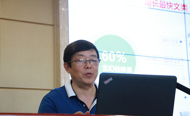 讲座上,欧阳友权首先讲述了中国网络小说发展现状,进一步分析其流行原因并就网络小说短板提出解决办法。为说明中国网络小说发展现状,欧阳友权教授通过援引大量数据调查结果展示了当今网民数量、签约写手与职业半职业写手的数量、类型小说作品类型及数量,以及中国文学发展情况。“类型小说改变了中国文坛格局,激活了大众娱乐市场。”欧阳友权教授说道。类型小说的版权转让形成近几年的IP热,百度、阿里、腾讯的阅文集团等小说门户网站的繁荣,中国网络文学自发走向海外,诸多现象说明了中国网络文学对大众娱乐市场的激活。欧阳友权教授在分析网络小说流行的原因时,认为有以下几点原因:市场为网络类型小说带来现实机遇;网络小说具有产品价值与流量价值;读者对于不同类型网络小说的需求以及传媒主因等。他指出,网络小说在发展中还存在着过度迎合市场、经济利益驱动钝化了艺术创新的锐气等问题。对于这些短板,欧阳友权教授认为应避免模式化的“重复短板”;解决作家想象力的消解与“枯竭焦虑”问题;作家对文学应当心怀敬畏,“接地气”、“打深井”,要有更深的思想内涵。他表示未来类型小说创作应当慢下来、静下来、沉下来,“与其日更万字,不如以工匠精神慢慢地雕琢一部作品。”