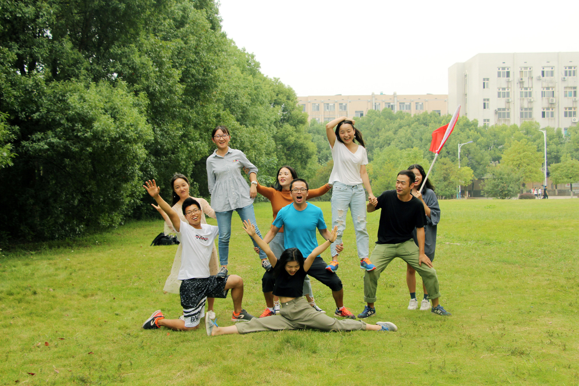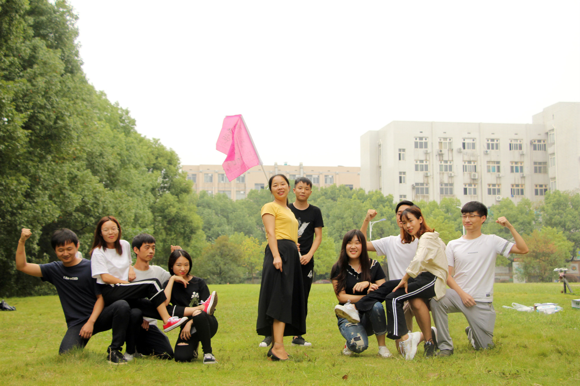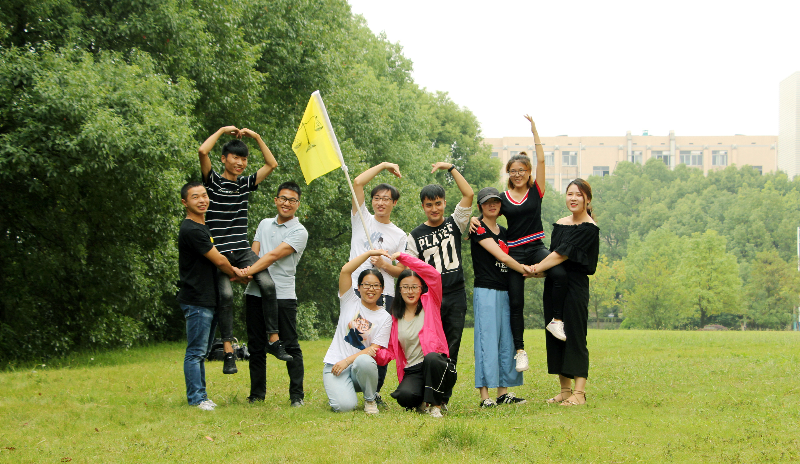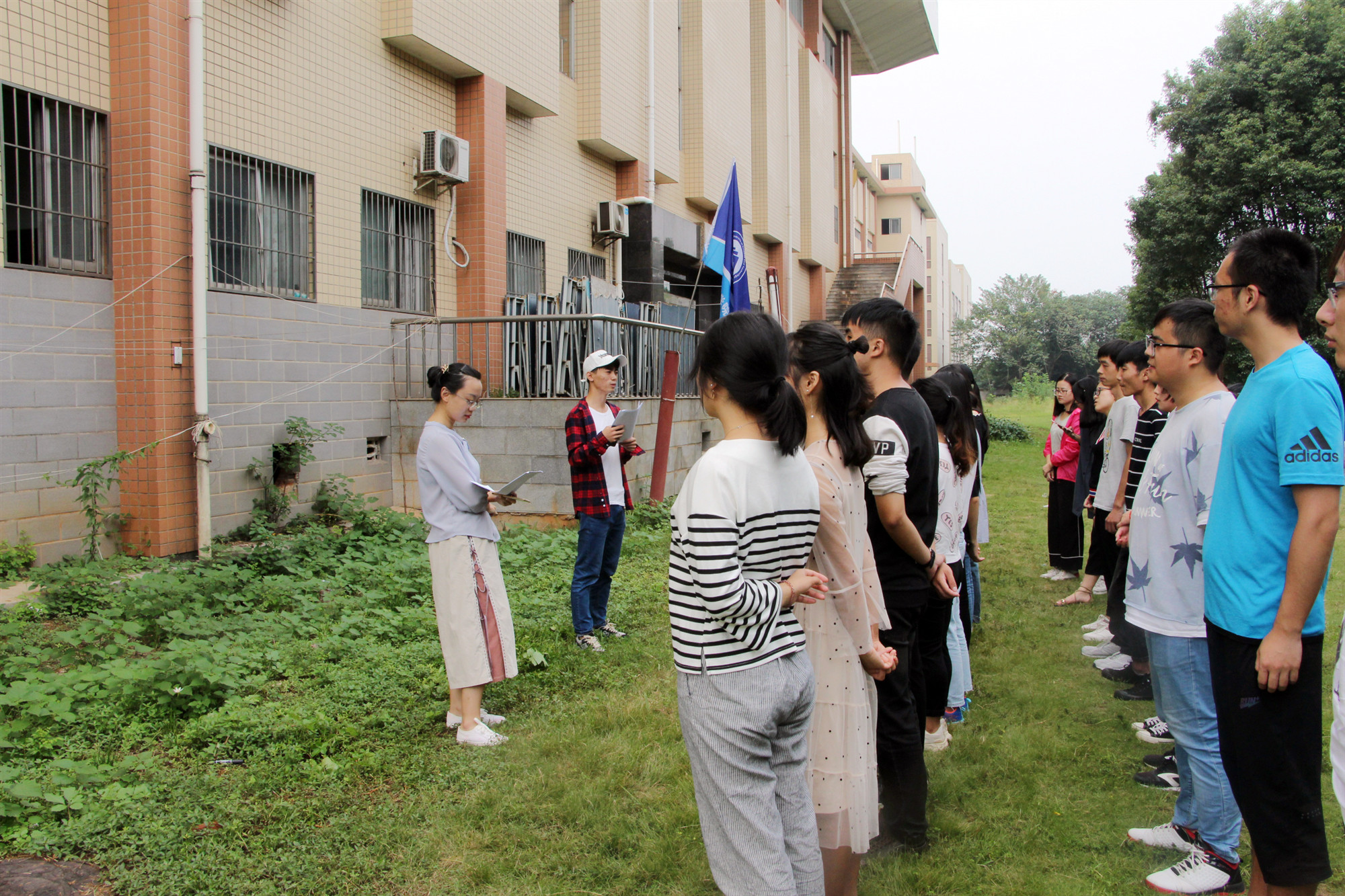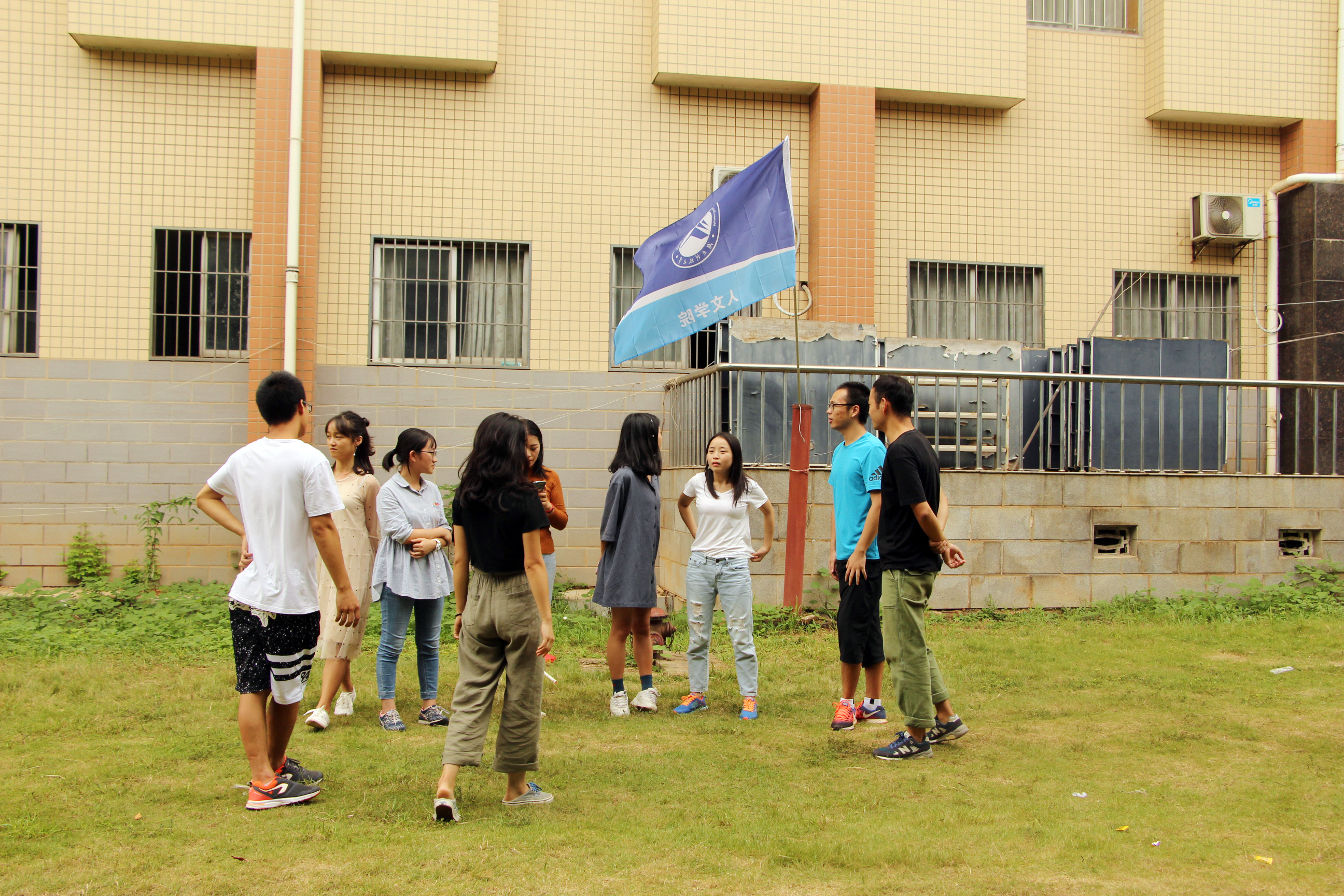 随后,教练将大家随机分成男女比例基本一致的4组,并要求每支队伍在规定时间内完成团队组建。组建内容包括:每支队伍选出队长、队秘和旗手,共同设计队徽、队形等。经过半小时的奇思妙想,产生了“地表最强”、“家里有矿”、“男女平等”、“Flying Rocket”4支队伍,展现了各自的团队风采。新颖的队名、嘹亮的歌声、多样的队形,将“知行合一”的主题完美诠释。