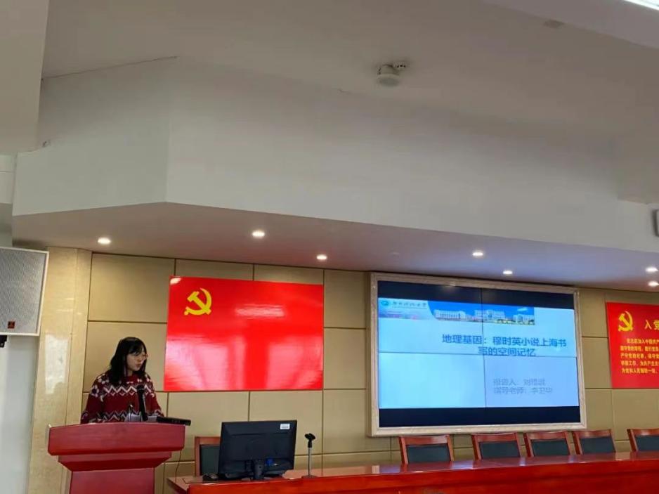 刘雅琪同学以《地理基因:穆时英小说上海书写的空间记忆》为题,紧扣作为宏观公共空间的上海、作为日常生活场所的上海、作为心灵归宿的上海三个方面进行了具体阐述。