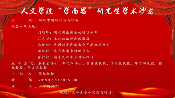 威廉williamhill中文官网“学而思”研究生学术沙龙 ——传统中国的政治与经济